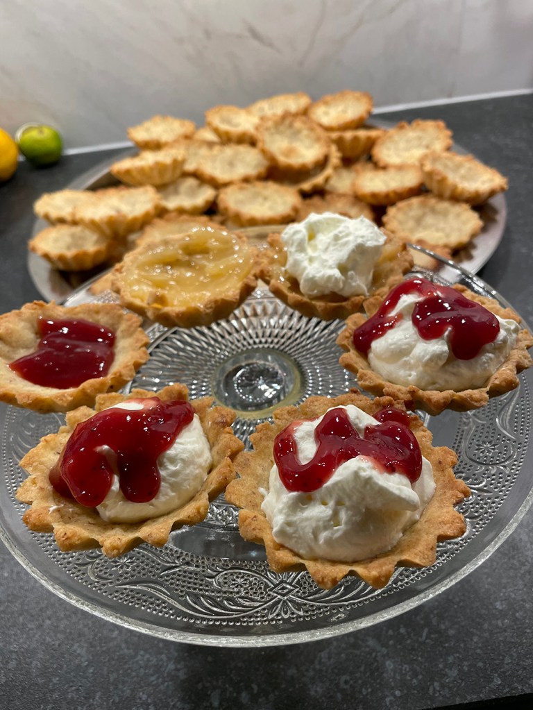 I den här familjen gillar alla sina mandelmusslor på olika sätt: med sylt och grädde, med mycket sylt eller lite sylt eller bara sylt utan grädde. Och jag provade en variant med lemoncurd och grädde som också var väldigt gott om man gillar det lite syrliga.