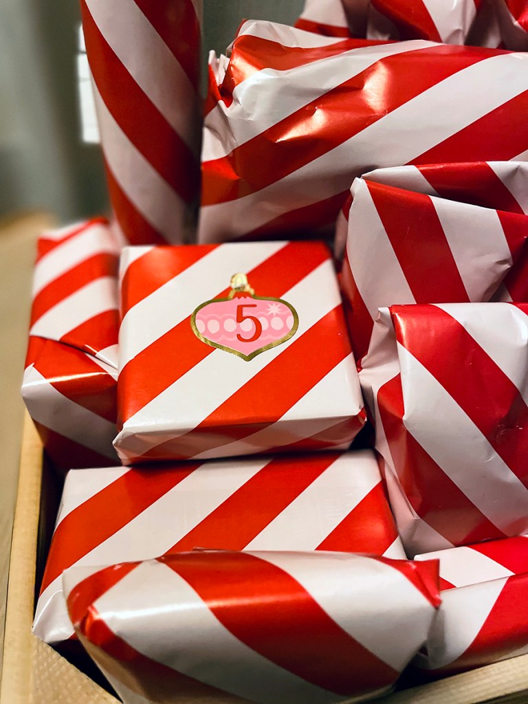 Barnen var inte så intresserade av någon paketkalender i år, men däremot tänkte jag att mamma & pappa skulle uppskatta en liten överraskning 🙂 Så i tisdags satt R och jag på kvällen och slog in 24 små paket som jag sedan kunde åka och lämna på onsdagen till en överraskad mamma.