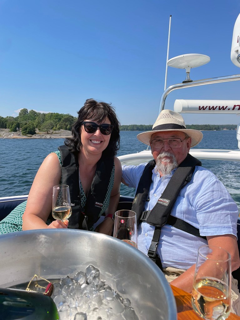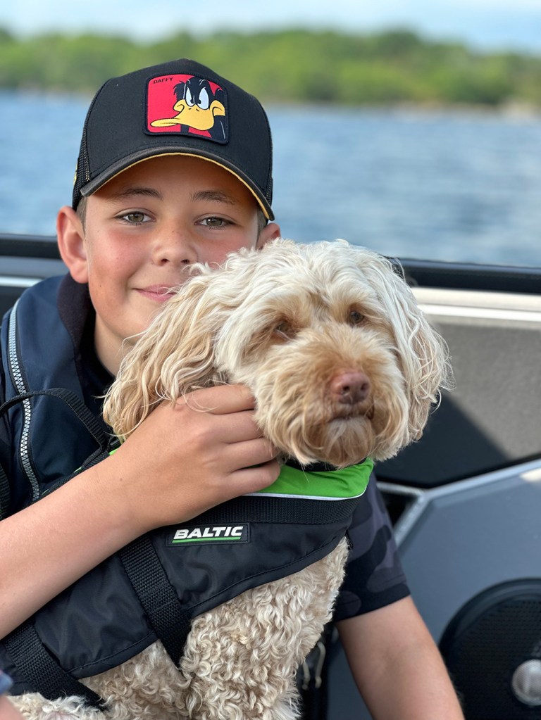 Det kom ett gäng kompisar till L igår, vilket är extra kul eftersom det oftast är R som annars har med kompisar till sommarhuset. L brukar vilja ladda batterierna här. Men som sagt, nu är de ett helt gäng 17-åringar och OMG – trodde att det var vår dotter som var lite seg men det verkar vara en åldersgrej, haha! De kommer inte igång förrän lunch och sedan är tempot inte svinhögt 😀 Men de verkar ha kul och det är mycket skratt iaf! Igår tog vi en båttur för att de badsugna skulle bada och de glassugna skulle få glass. Den fyrbenta fluffiga som är en riktig båthund följde också med. Hon sitter alltid på bryggan och väntar när någon går på båten. Såå ivrig att få följa med.