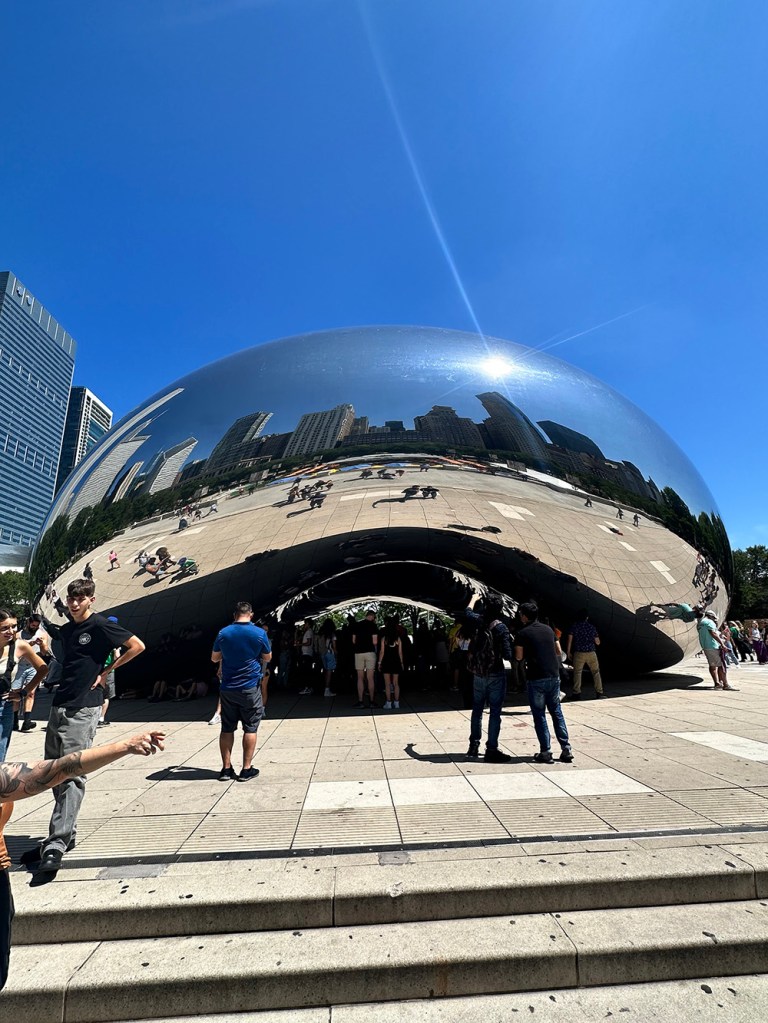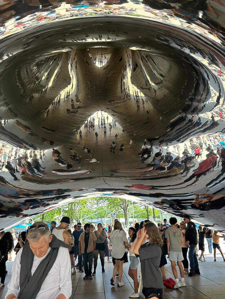 På vår to see-list hade vi Bönan, eller Cloud Gate som den egentligen heter, fast den kallas för The Bean. Det är en stor skulptur i rostfritt stål som ligger i Millenium Park.
