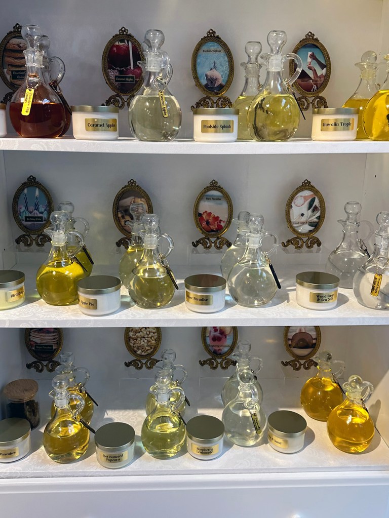 Man fick börja med att välja ut sin ”behållare” och sedan vilken eller vilka dofter man ville ha på sitt ljus. Det fanns massa olika dofter och man kunde välja att skapa sin egen genom att blanda två om man ville.