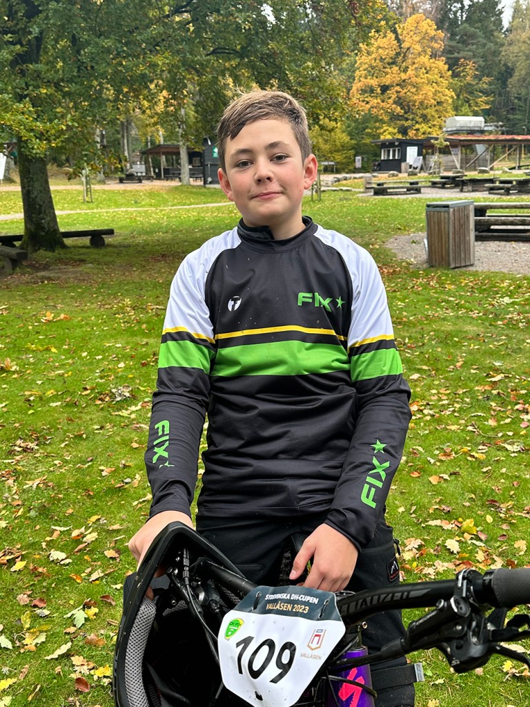Igår var det då R:s första mountainbike-tävling och han var lite pirrig! Det var klubbmästerskap i enduro, vilket egentligen inte är det han tränar, utan han tränar trail. Heeelt nya begrepp för mig men så som jag har fattat det är trail när man mest cyklar på stigar i skogen utan allt för mycket backar. Enduro är mer snabbt nedför över stock och sten på slingriga stigar. Downhill är ett tredje begrepp men då åker man lift upp och cyklar snabbt ned. Enduro cyklar man även uppför och det var alltså det R gjorde igår.