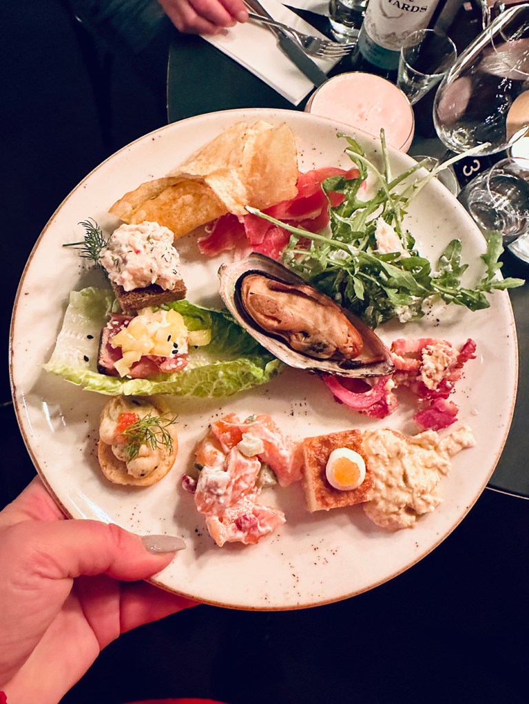 Fulla i magarna och fulla i skratt packade vi in oss i den fullpackade bilen (huuur kan vi alltid ha så mycket prylar med oss?!?) och begav oss mot Solsidan. Vi hade tänkt köra en ost- & charkbricka till kvällens bingospel, men alla var så mätta den här uppesittarkvällen att det endast blivit lite snacks och grämer mig nästan då jag var sugen på ost. Men, den finns ju kvar en annan dag. Och visst kan man äta ostbricka till lunch om man vill? När det är juldagar? 🙂