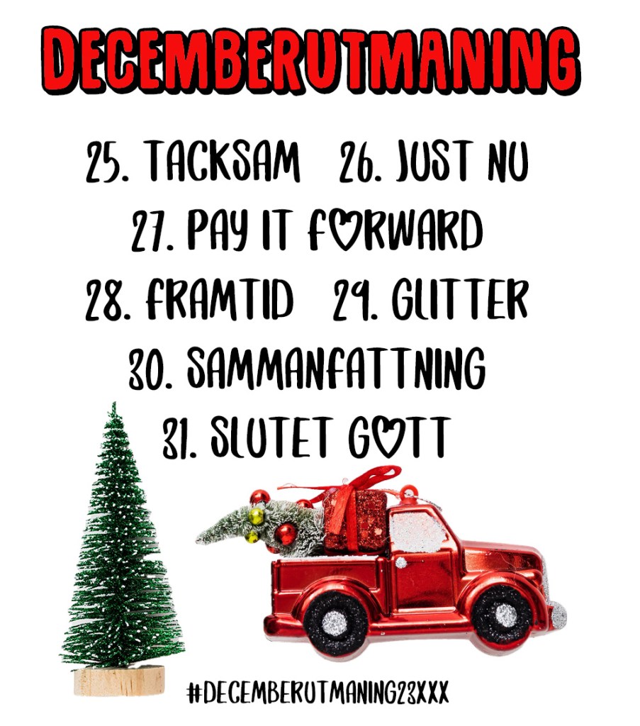 Tänk, imorgon går vi in i sista veckan av det här påfundet jag drog igång för snart en månad sedan, #decemberutmaning23xxx.