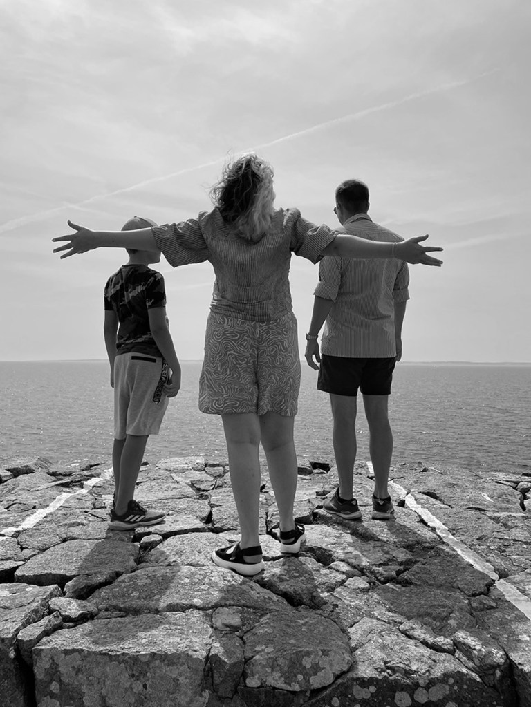 V & jag började ettan på lågstadiet tillsammans och sedan började vi i samma klass som B på mellanstadiet. Vi har inte alltid varit supertighta alla tre när vi växte upp, men hittade varandra mer på högstadiet och sedan dess har vi hållit ihop. Visst var det vissa år när vi var på olika platser i livet när vi inte träffades så ofta, men det spelade liksom ingen roll. När vi sedan började bilda familjer kom vi närmare igen: männen har blivit nära vänner och kidsen funkar bra ihop. Då blir det enkelt att fortsätta umgås!