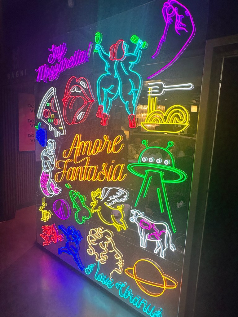 Jag har varit på aw med Torsdagsklubben, en måndag 🙂 Vi testade ett nytt italienskt ställe, som jag gärna går till igen. Vi beställde in tre olika huvudrätter och delade på allt. Mycket mumsigt! Gillade verkligen atmosfären med spetsgardiner, olika tallrikar och porslin med en ”hemtrevlig” känsla, blandat med kitchiga inredningsdetaljer, neonskyltar och italienska röster på toaletterna 🙂