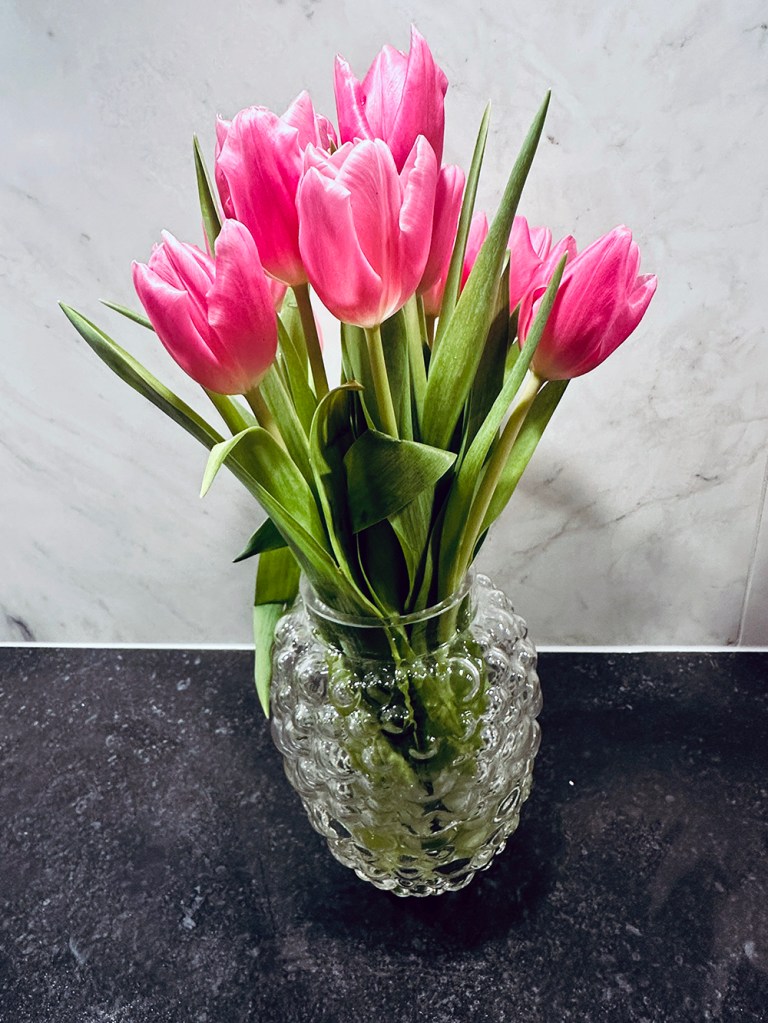 Tulpanerna är från min älskade dotter och örhängena är en present till mig själv. Mer gåvor blir det imorgon när det är dags för Torsdagstrissen 🙂