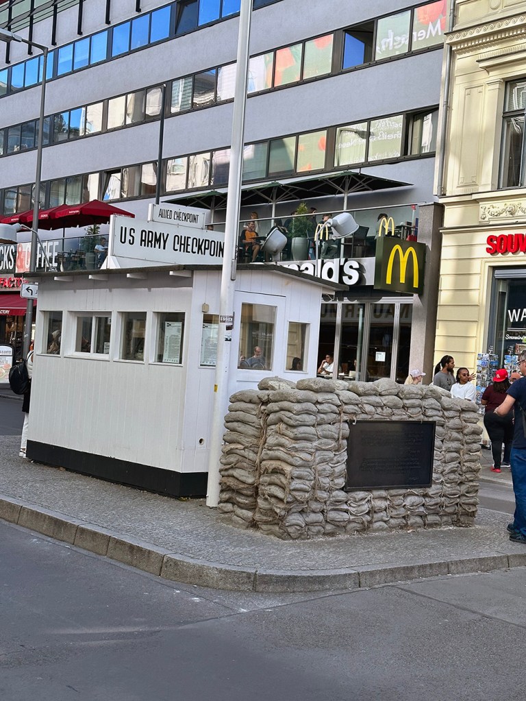 På eftermiddagen tog jag mig till Checkpoint Charlie, den kanske mest kända gränsstationen/övergången mellan Öst- & Västberlin under Berlinmurens tid. Den ena sidan kontrollerades av USA & den andra av Sovjetunionen/Östtyskland.
