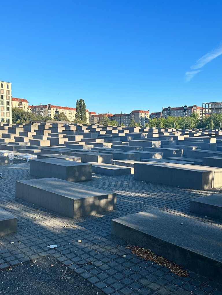 Jag mötte upp J och vi fortsatte promenaden mot Förintelsemonumentet. Ett minnesmärke som tillägnades alla judar som mördades under förintelsen. Det består av 2711 betongpelare i olika höjd, med gångar emellan. Det finns tydligen också ett underjordiskt museum som bland annat visar en lista över alla judar som man vet blev mördade. Detta missade jag/vi dock helt.