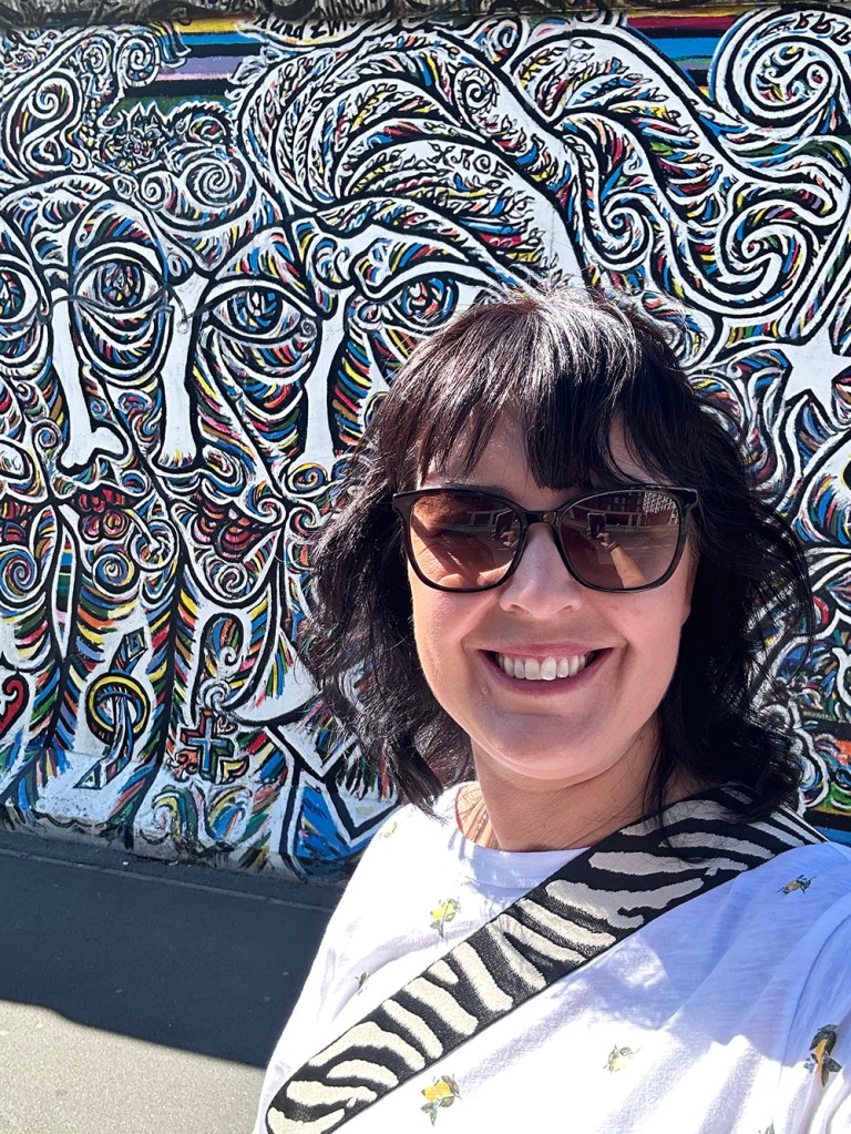 I Berlin hade jag en riktig sightseeing dag, helt för mig själv. Eller iaf fram till kvällen då J joinade. Det var en riktig utmaning för mig men jag hade det såå bra! Jag tog buss till ett ställe där jag vill börja min tur längs East side gallery. Det är en del av den gamla Berlinmuren (1316 meter) som behållits och på den östra sidan finns 160 målningar av olika konstnärer. Det är främst politiska budskap. På ”baksidan” är det klotter och graffiti, också ganska häftigt.